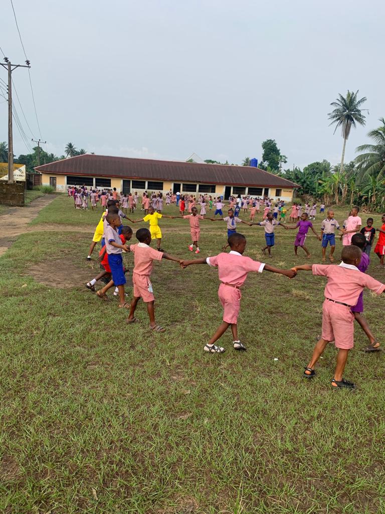 Adiaha Obong Nursery/Primary School kids in Okopedi Okobo out on exercises.