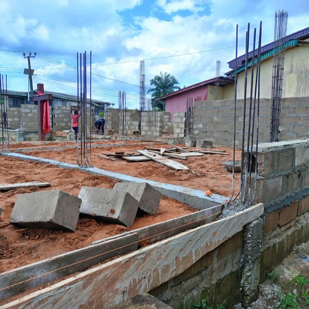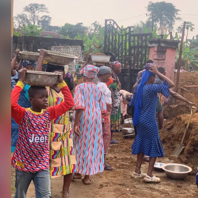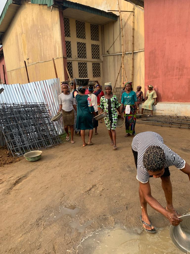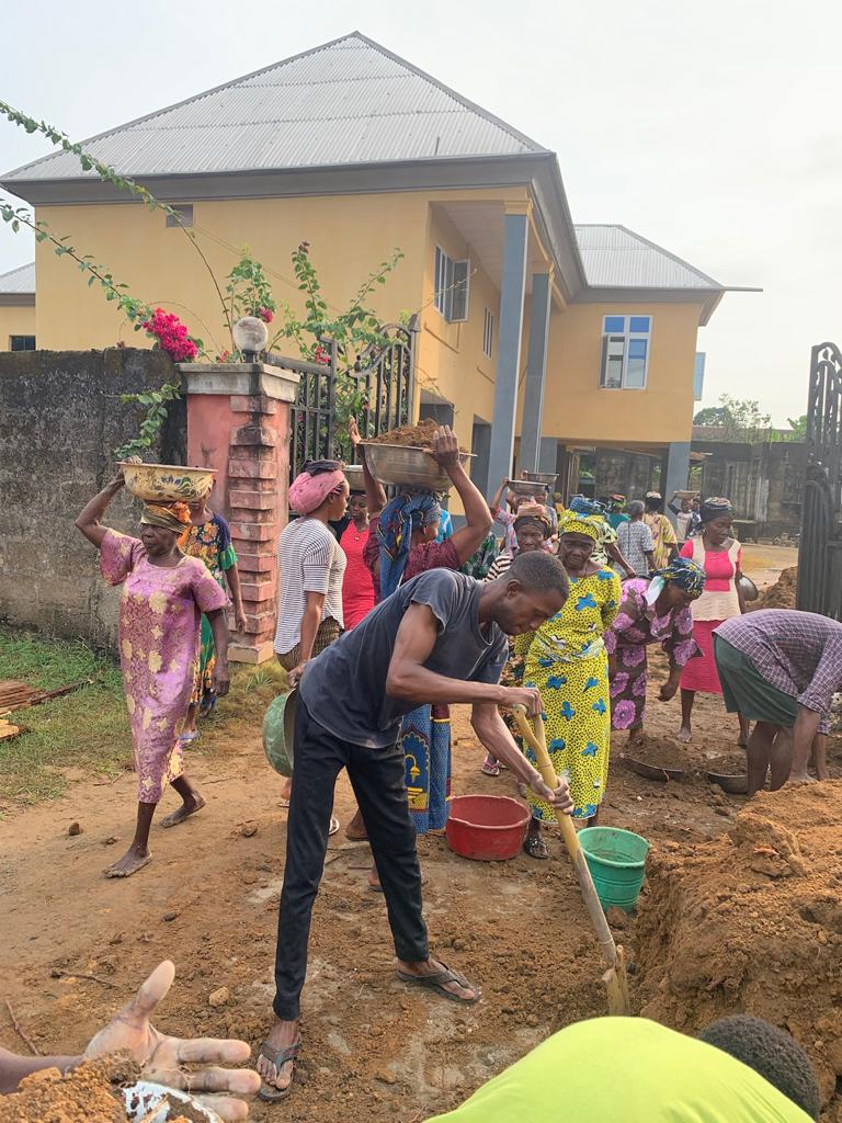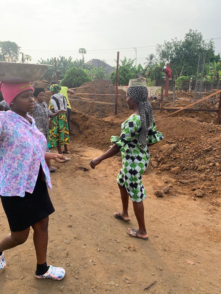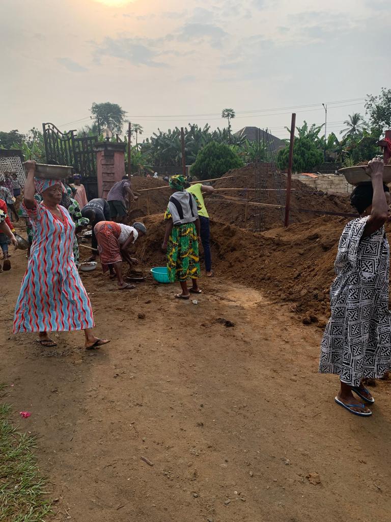 Grandparents, parents of the kids and other parishioners of St. John's Parish, Okobo putting labor to build a new school.