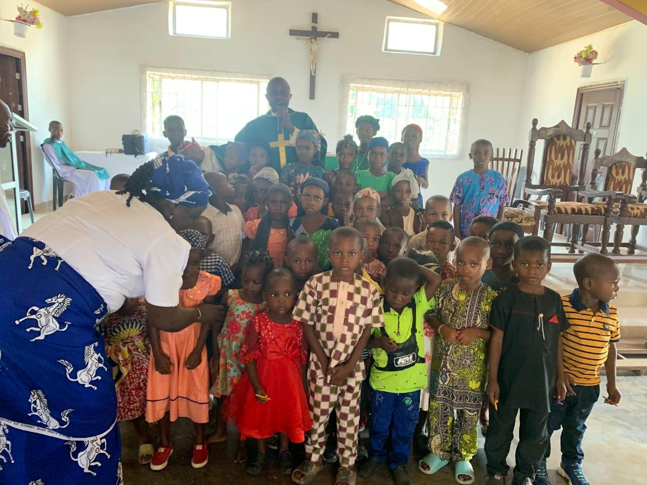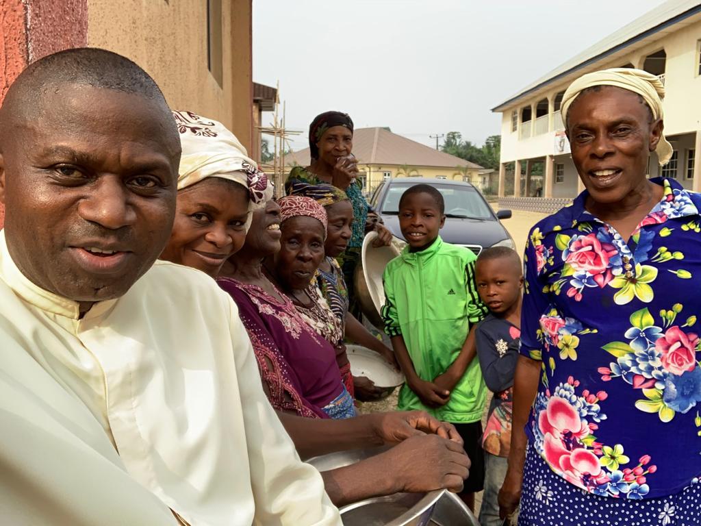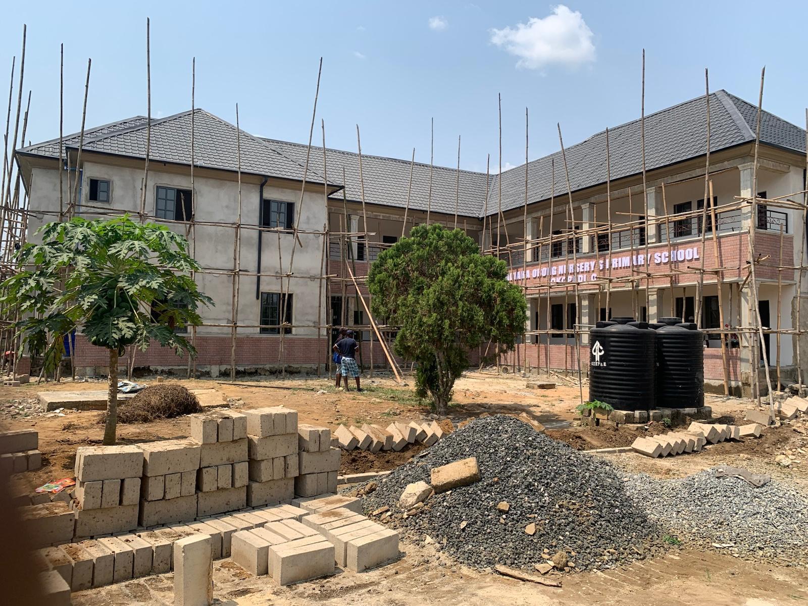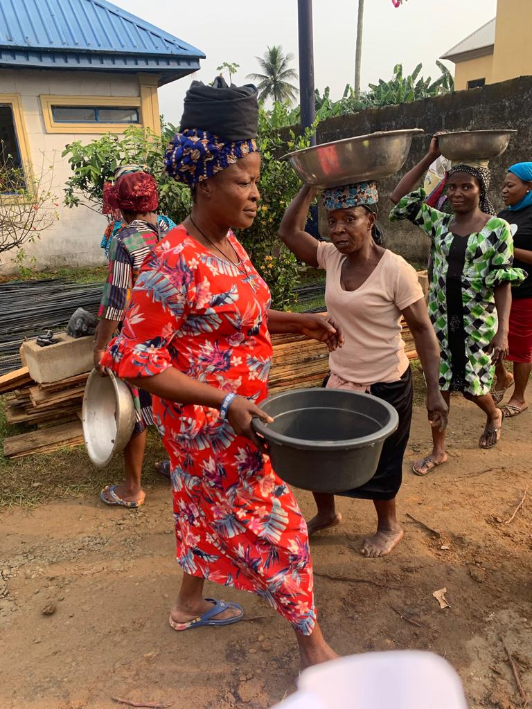 Grandparents, parents of the kids and other parishioners of St. John's Parish, Okobo putting labor to build a new school.