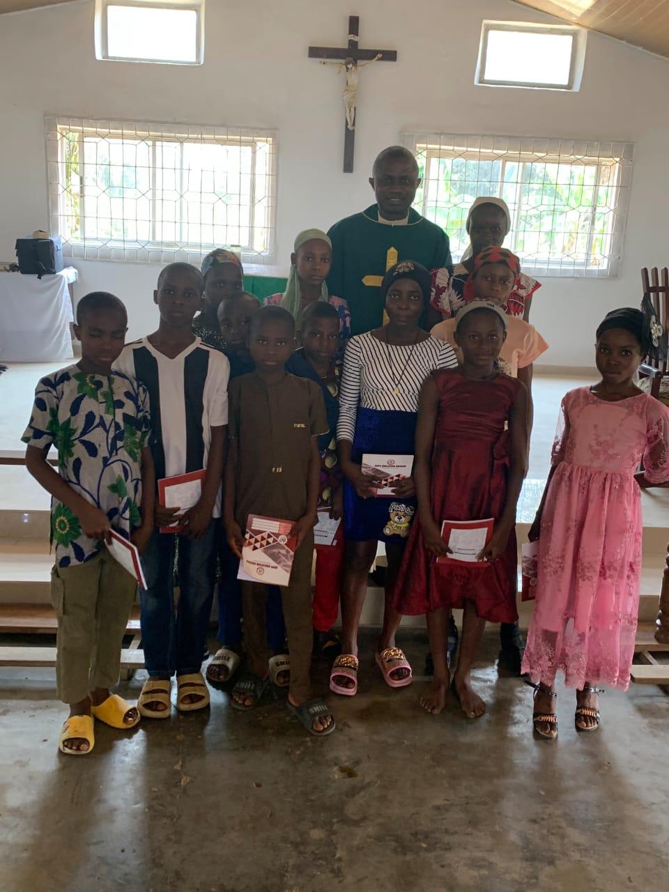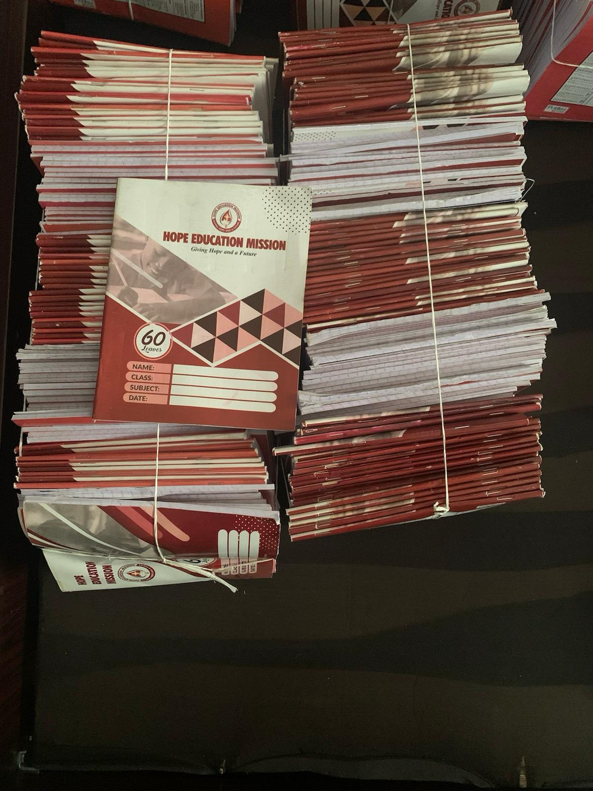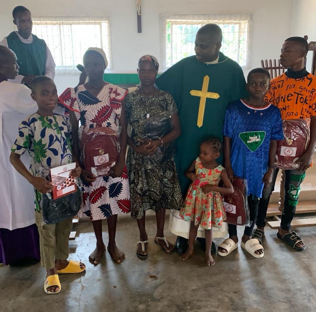 Offering of books, pencil and backpacks to students by Hope Education Mission outreach.