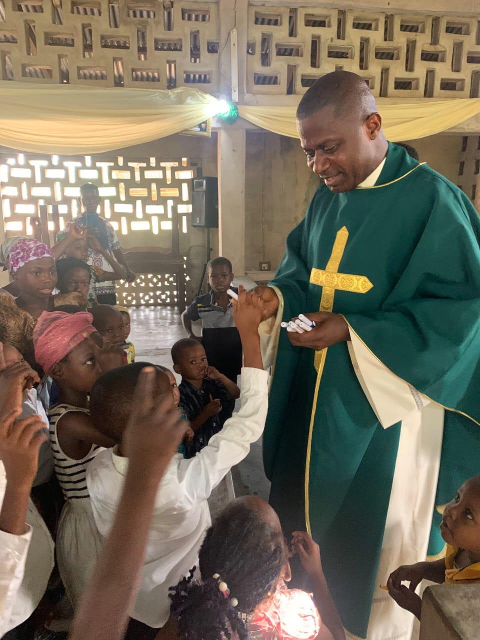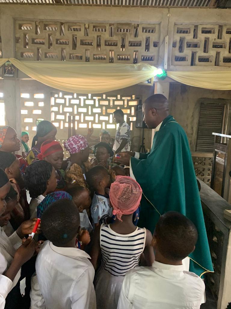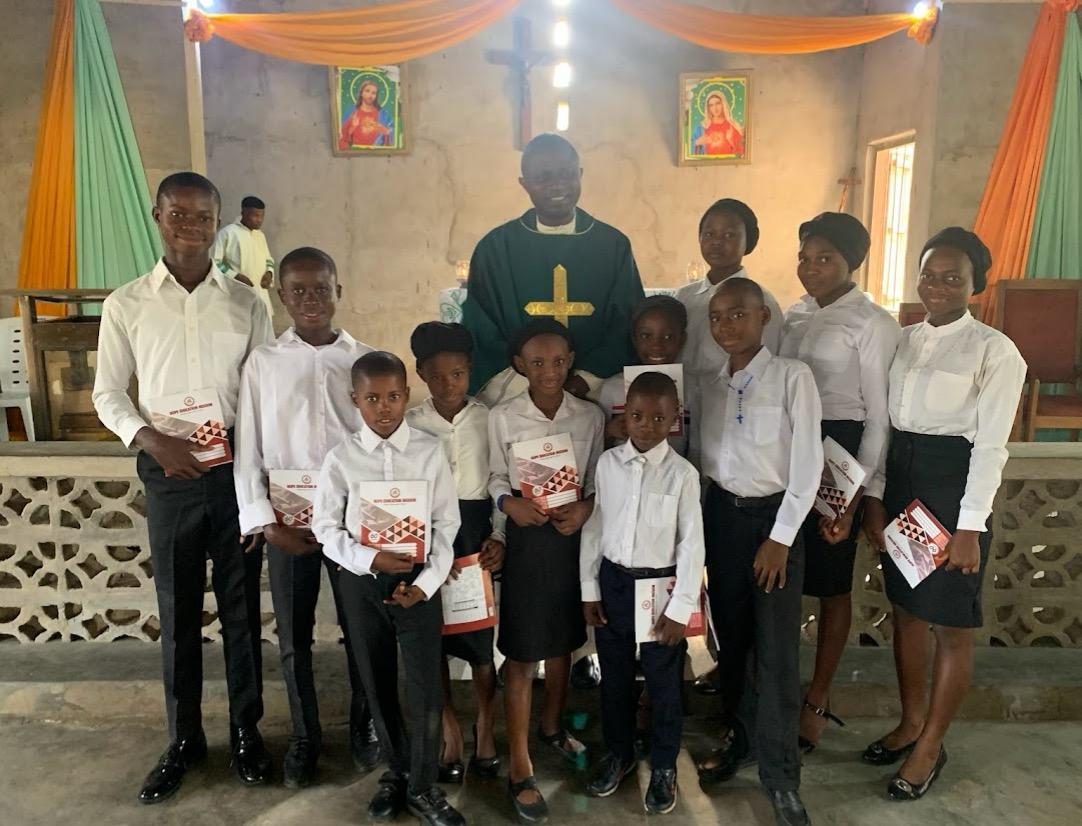 Offering of books, pencil and backpacks to students by Hope Education Mission outreach.